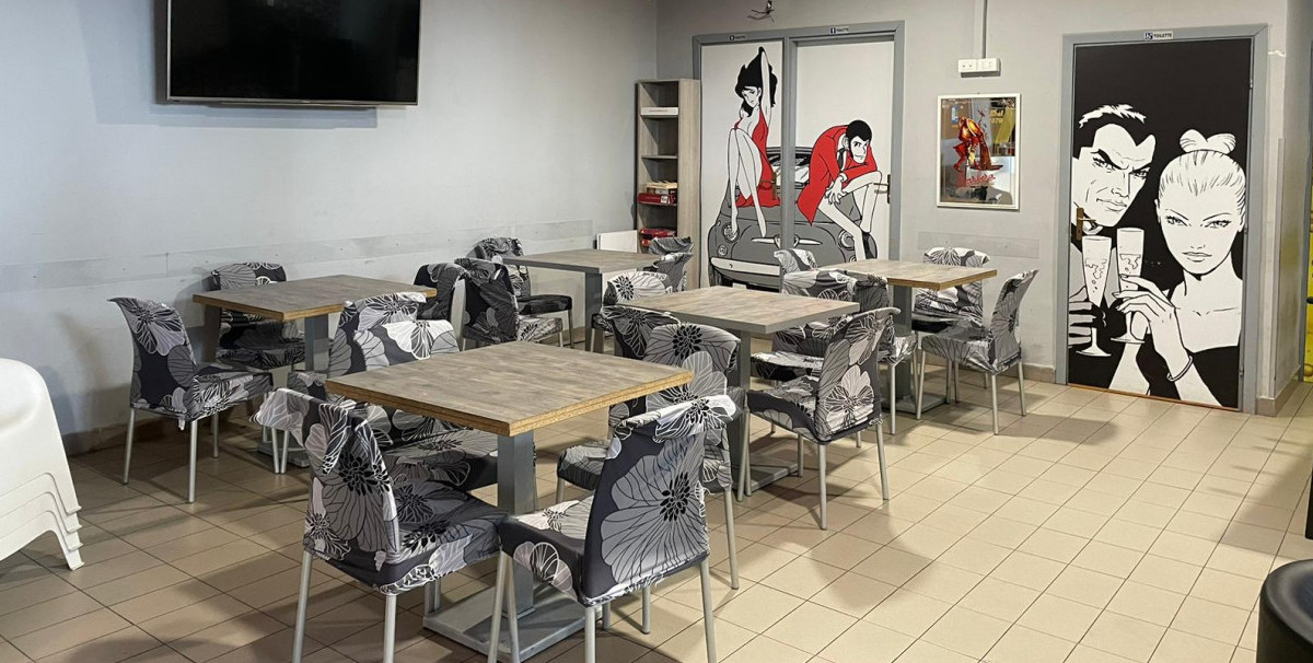 L'attività è già avviata e si compone di servizio bar, sala slot con annesso wc, cucina con cappa in acciaio inox, magazzino interno e impianto di videosorveglianza.